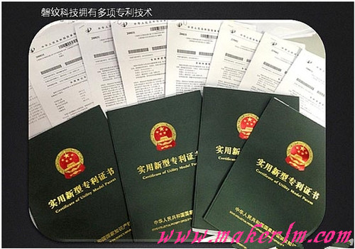 研发初期连续申请20多余项专利,一年时间授权12项实用新型专利技术;国内首创断电续打、耗材监控报警智能系统、自动送退丝3项专利技术;全球首创全闭环智能运动控制专利技术。