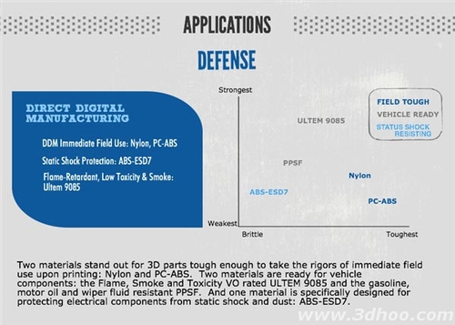 为了帮助很方便地找出最适合自己的材料。近日,3D设计解决方案提供商、SolidWorks和Stratasys公司产品经销商CAPINC制作了一个关于各种3D打印应用适合材料的信息图表。