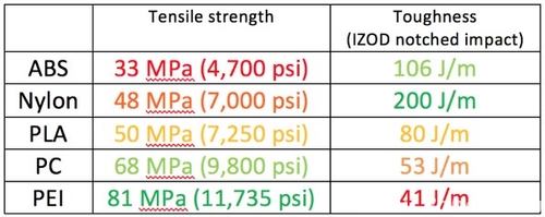 他们还大概介绍了不同3D打印材料之间“强度”与“韧性”之间的区别。比如分别用强化玻璃和3003铝材铸造一把锤,技术上强化玻璃制成的锤强度更高一些,但是它却无法像更软的铝锤那样反复使用。