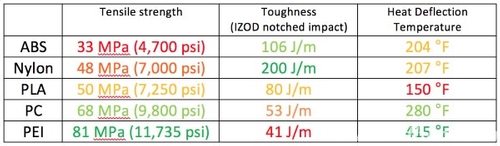 此外,对于一些在FDM(熔融沉积成型) 3D打印机上使用的线材来说,熔化温度能够显著影响其性能。有些材料如果暴露在高温下可能会产生翘曲,或者变得更柔以及韧性没那么好。相比较而言,如镍或陶瓷这些具有更高熔化温度的材料可适用于那些要求更加严格的工作。